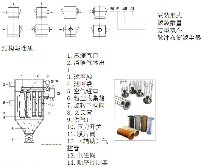 含塵氣流從進(jìn)氣口進(jìn)入下箱體后,部分沉降,輕微粉塵浮動時被濾袋阻留,凈化空氣透過濾袋,經(jīng)文氏管進(jìn)入上箱體,從出氣口排出。