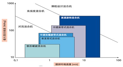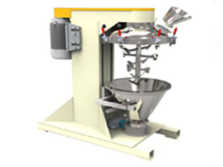 產(chǎn)品通過錐形混合腔頂部投入,投料范圍在30%-100%之間,設(shè)備中間有一個頂部驅(qū)動的高速轉(zhuǎn)軸,因此便去除了在產(chǎn)品區(qū)域的密封設(shè)計以及軸承。在軸上有緊貼內(nèi)壁的槳式混合原件。通過高速旋轉(zhuǎn)的攪拌槳和錐形內(nèi)倉的共同作用將產(chǎn)品由底部帶至混合腔的上部。當(dāng)產(chǎn)品達到頂部的時候又重新回落到混合倉中心,如此的產(chǎn)品的方式形成了一種快速的宏觀混合。